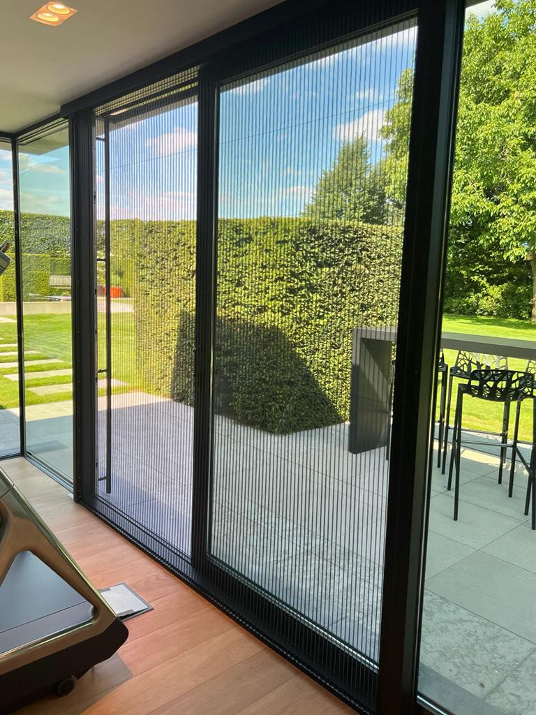 Daarnaast bieden plisséhordeuren een elegante, ruimtebesparende oplossing waarbij het gevouwen gaas bij opening bijna volledig uit het zicht verdwijnt, ideaal voor grote doorgangen of terrasdeuren waar esthetiek en praktisch gebruik belangrijk zijn.