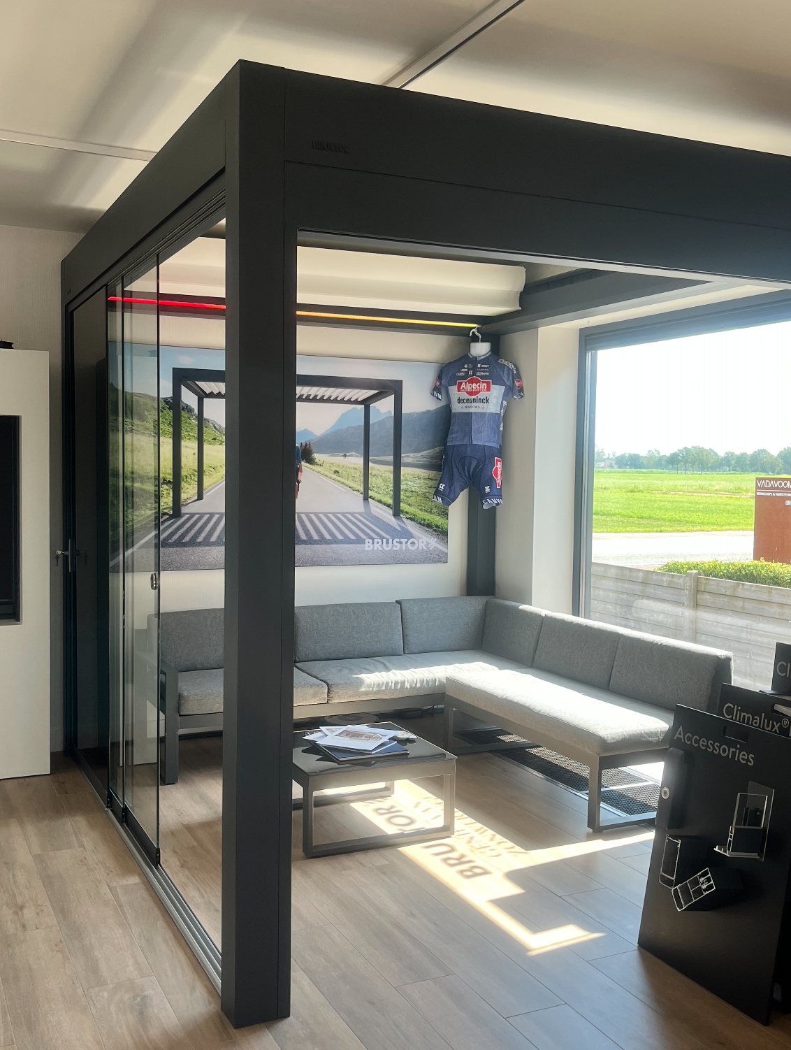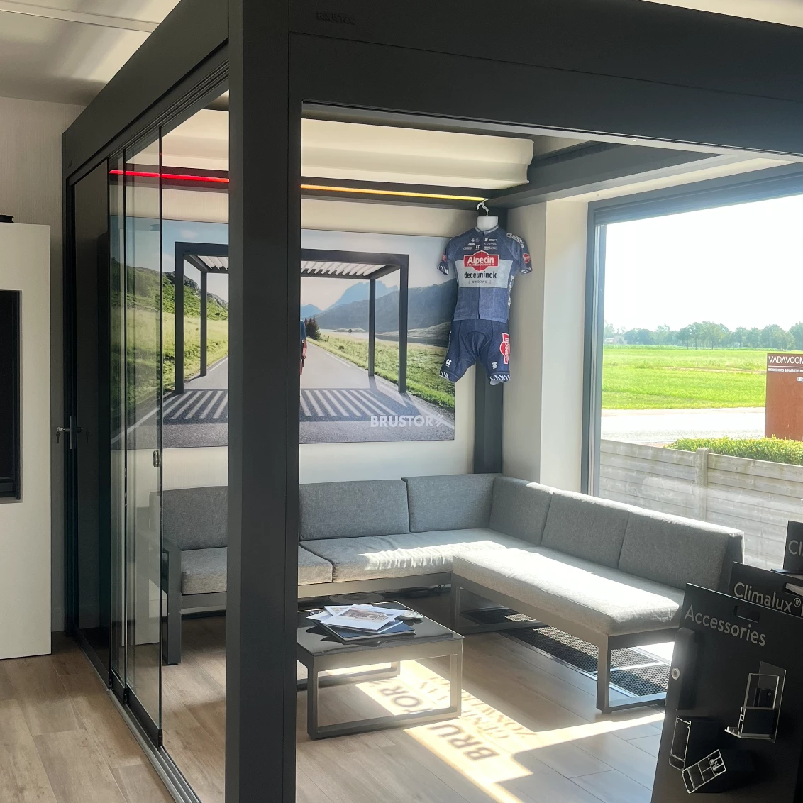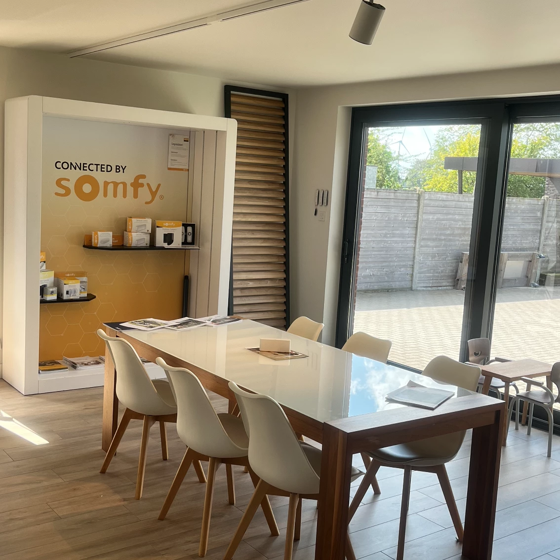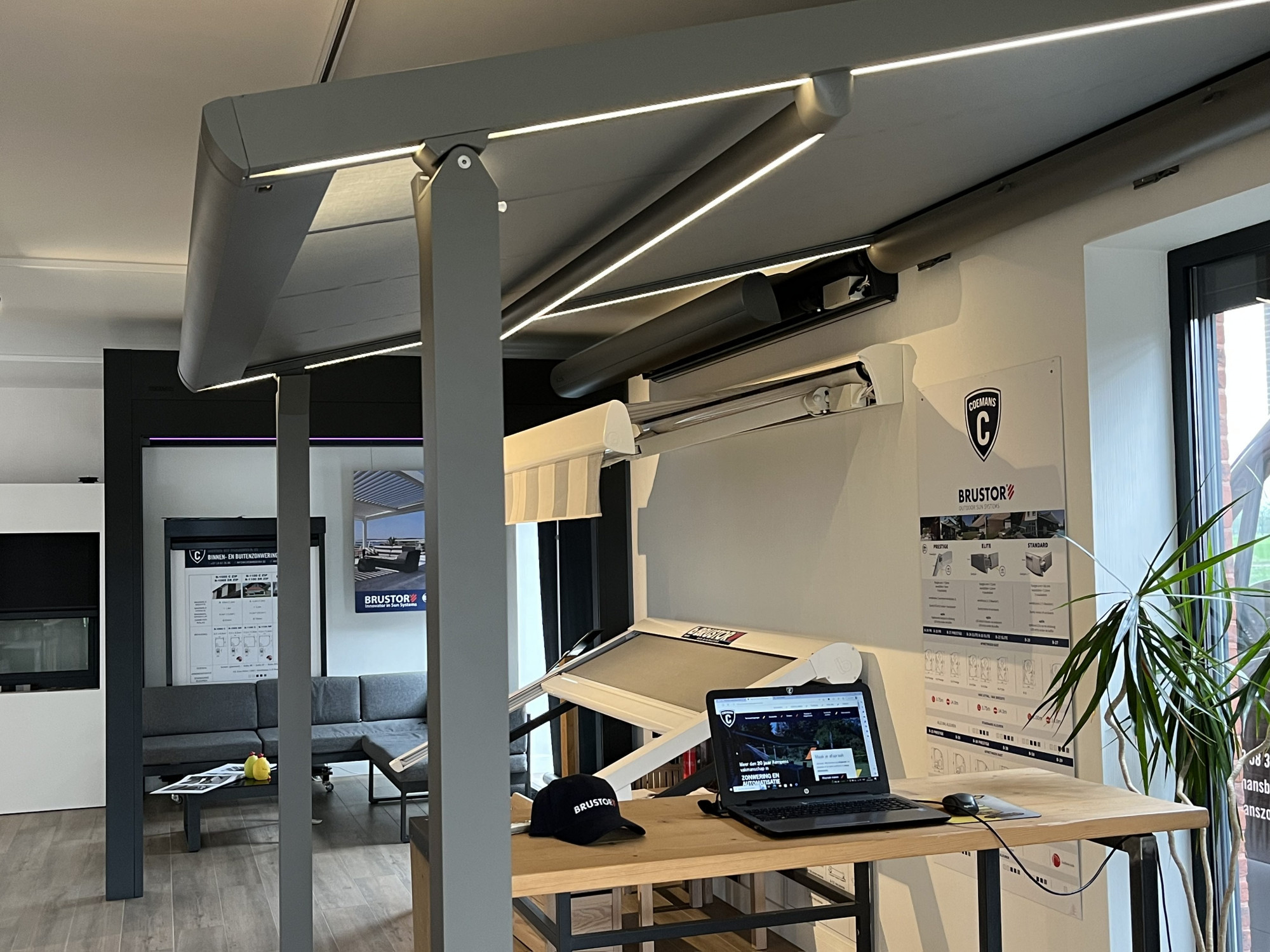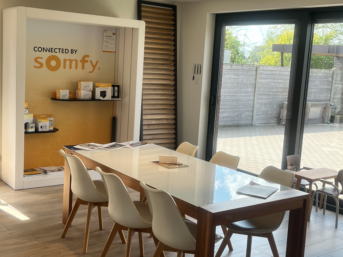 Van harte welkom in onze toonzaal en -tuin. Aan de hand van verschillende demonstratieopstellingen zie en voel je de topkwaliteit van Belgische kwaliteitsmerken zoals Brustor, Wilms, Therma, HR en Skylux. Je maakt kennis met de talrijke opties en mogelijkheden voor onze producten. Aan de hand van kleur- en doekstalen komen we samen tot de juiste keuzes.